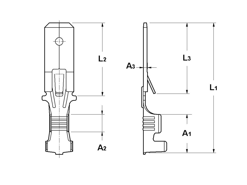 Part number - 0011546001 - WIRE CRIMP TABS 6,3 FOR MULTI-WAY CONNECTIONS (WITH LOCKING LANCE)